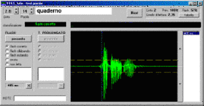 - l’età di lettura, il livello di lettura ed il quoziente di lettura, mediante il Test Diretto di Lettura e Scrittura (TDLS) di G. Chiarenza. Si tratta di un test autosomministrato e computerizzato composto da un test di lettura e un test ortografico. Il TDLS individua anche i sottotipi di dislessia (disfonetica, diseidetica e mista) e il ritardo di lettura semplice utili per una riabilitazione mirata con il metodo Reader.